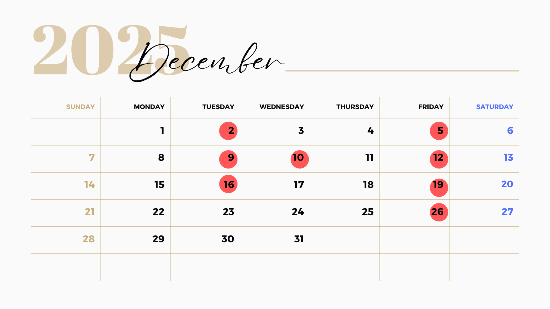 年末の営業 定休日:火曜日・金曜日+月に1日の水曜日→10日 ※23日・30日の